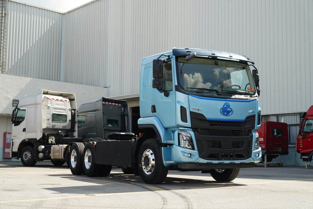 在续航与动力方面,乘龙H5超轻版纯电牵引车搭载宁德时代400度长寿命电池,标载工况下单次续航突破300公里,充分满足中短途运输需求。 匹配法士特高效电机与变速箱,起步、加速、爬坡动力澎湃,无论是平原疾驰还是山区攻坚,全路况皆能从容应对。