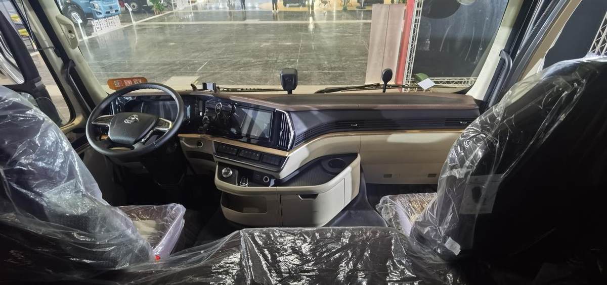 对于以车为家的卡友而言,舒适性不仅关乎状态,更关乎健康。乘龙HK LNG牵引车采用高顶平地板设计,即便是身高1.8米的驾驶者也能在车内自如活动。气囊减震座椅支持六向调节,带腰托与通风加热功能,长时间开车也不易累。1100mm超宽卧铺、24处储物格,以及12.3英寸液晶仪表加10.1英寸中控屏组成的智能双屏,共同营造出一个舒适、便捷的移动空间。车辆驾驶室还达到5A级健康座舱标准,关心卡友的每一程健康。