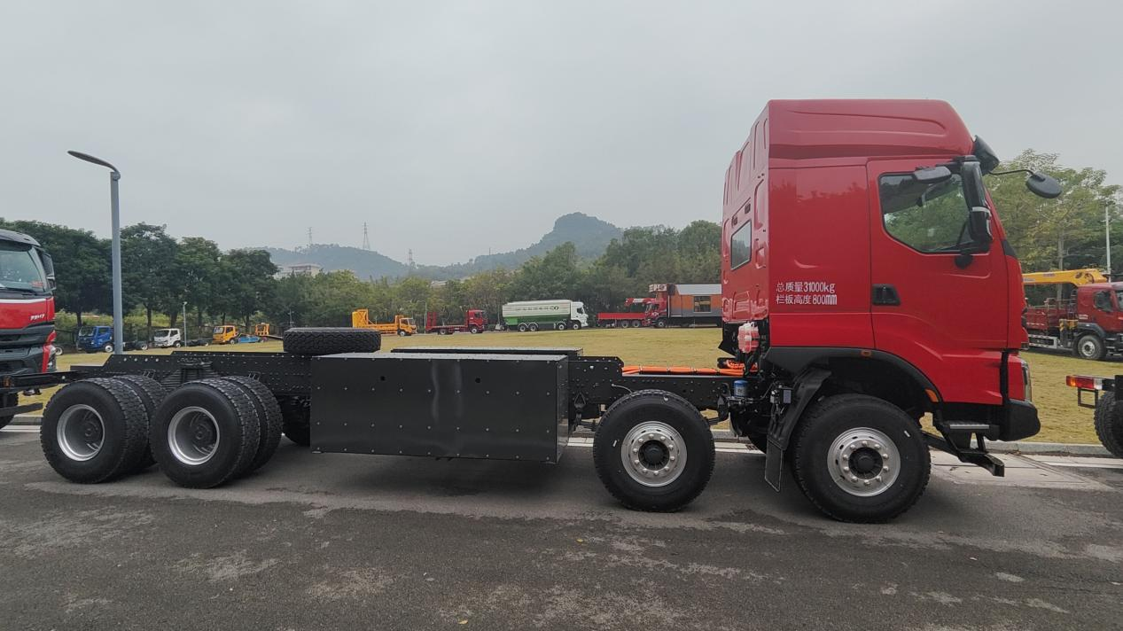 强电机加持,让重载运输动力不打折。这款车搭载了绿控550kW大功率电机(可爆发748马力),与4挡变速箱黄金组合,动力输出强劲且稳定,轻松攻克重载上坡、泥泞颠簸等复杂路况。