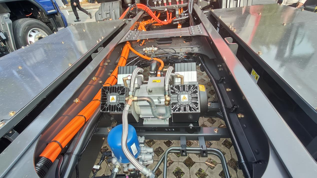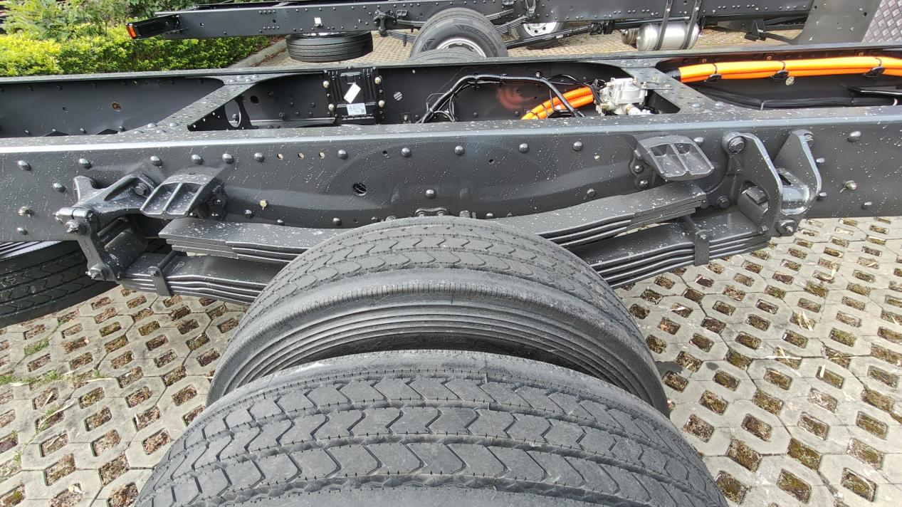 合规载重直接决定运营收益,乘龙翼威5纯电大单桥采用模块化底盘与轻量化车身设计,搭配高能量密度电池,实现降重而不降质的核心突破,整车较行业平均水平轻300kg。同时,车辆搭配275/80R22.5轮胎与10.5吨电驱后桥,进一步提升了行驶稳定性与复杂路况通过性,各种复杂路况都能从容应对,兼顾高效与可靠。