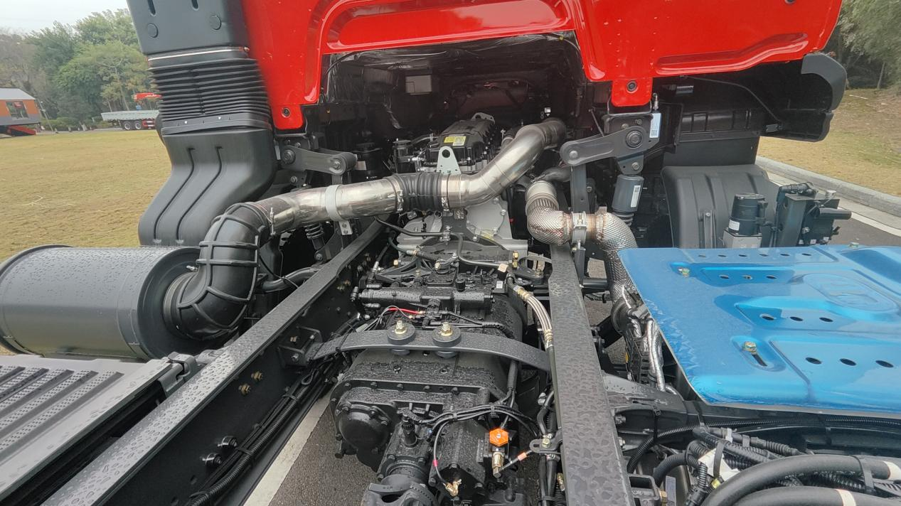 承载能力决定运输效益,该车采用宝钢高强度钢材质打造的大梁,一次冲压成型,被誉为“龙的脊梁”,能够承受长期频繁装卸、重载行驶带来的高强度压力而不易变形。搭配9.5吨级加强前桥+25吨后桥黄金承载组合,辅以11/12+9片加强型板簧,合规前提下实现更高载重,砂石、矿石、建材等重载物资轻松转运。车架采用喷塑防腐工艺,配合IP67级防水底盘与全进口防水插件,无惧泥泞、积水、粉尘恶劣环境,高出勤率保障长期收益。