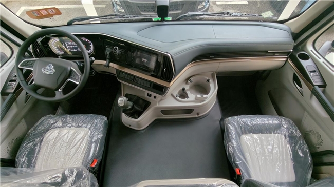 跑资源运输的卡友常年奔波在路上,舒适的驾乘环境至关重要。乘龙翼威5纯电牵引车内饰采用全软包设计,平地板布局让车内空间更开阔,内高1.93米,让卡友站立、转身无局促感;卧铺加宽至最宽810mm,搭配主驾座椅“一键躺平”功能,卡友在装卸货间隙能充分休息,以更佳状态投入运营。