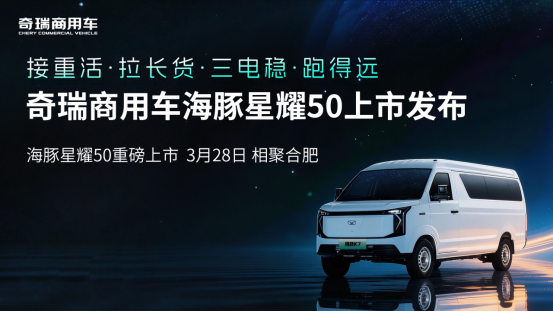 春潮启新程,智运向未来。2026合肥新能源商用车展览会暨第二届绿色物流发展大会即将于3月27-29日在合肥滨湖国际会展中心盛大启幕。作为奇瑞商用车的中国展会首秀,本次展会以“绿色动力 智运未来”为主题,汇聚5000 +省内物流企业与采购商,打造政企对接、产业交流、供需匹配的专业平台。奇瑞商用车将携全系家族化产品矩阵重磅登场,发布FSCV未来超级商用车计划、无人车布局等核心战略,更将重磅推出城配物流战略级新品——海豚星耀50,以技术破局重构城配价值,为行业发展注入全新动能。