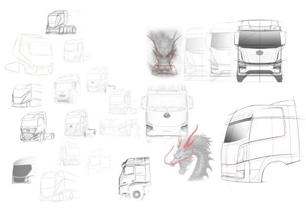 2021年8月,秦工及造型团队接到了一个特殊的任务:乘龙H5V驾驶室的设计。之所以说是特殊的任务,是因为这次与以往单一车型设计不同,乘龙H5V作为全新一代准重型平台,涵盖牵引车、载货车、工程车、专用车等多个品类,动力也覆盖传统能源、纯电动、混合动力、燃料电池。如此复杂的车型应用,使得乘龙H5V造型设计难度呈指数级增长。